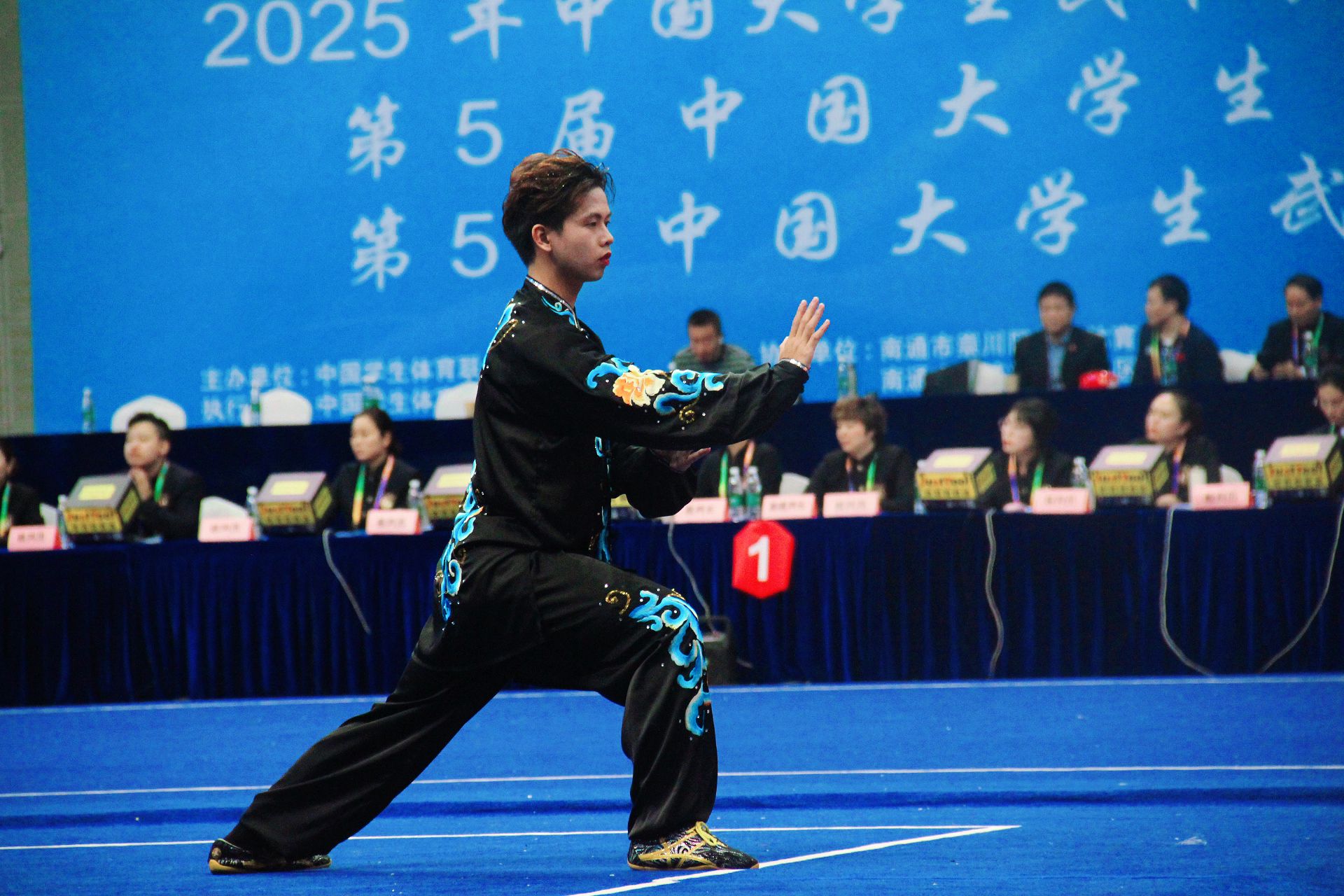本网讯(体育学院 张亚蒙)2025年10月25日至10月31日,由中国学生体育联合会主办的2025年中国大学生武术套路锦标赛(丙组、丁组)在江苏南通体育会展中心圆满举行。作为国内高校武术领域的顶级赛事,本次比赛吸引了全国200余所高校的2500余名运动员同场竞技,竞争激烈,备受瞩目。