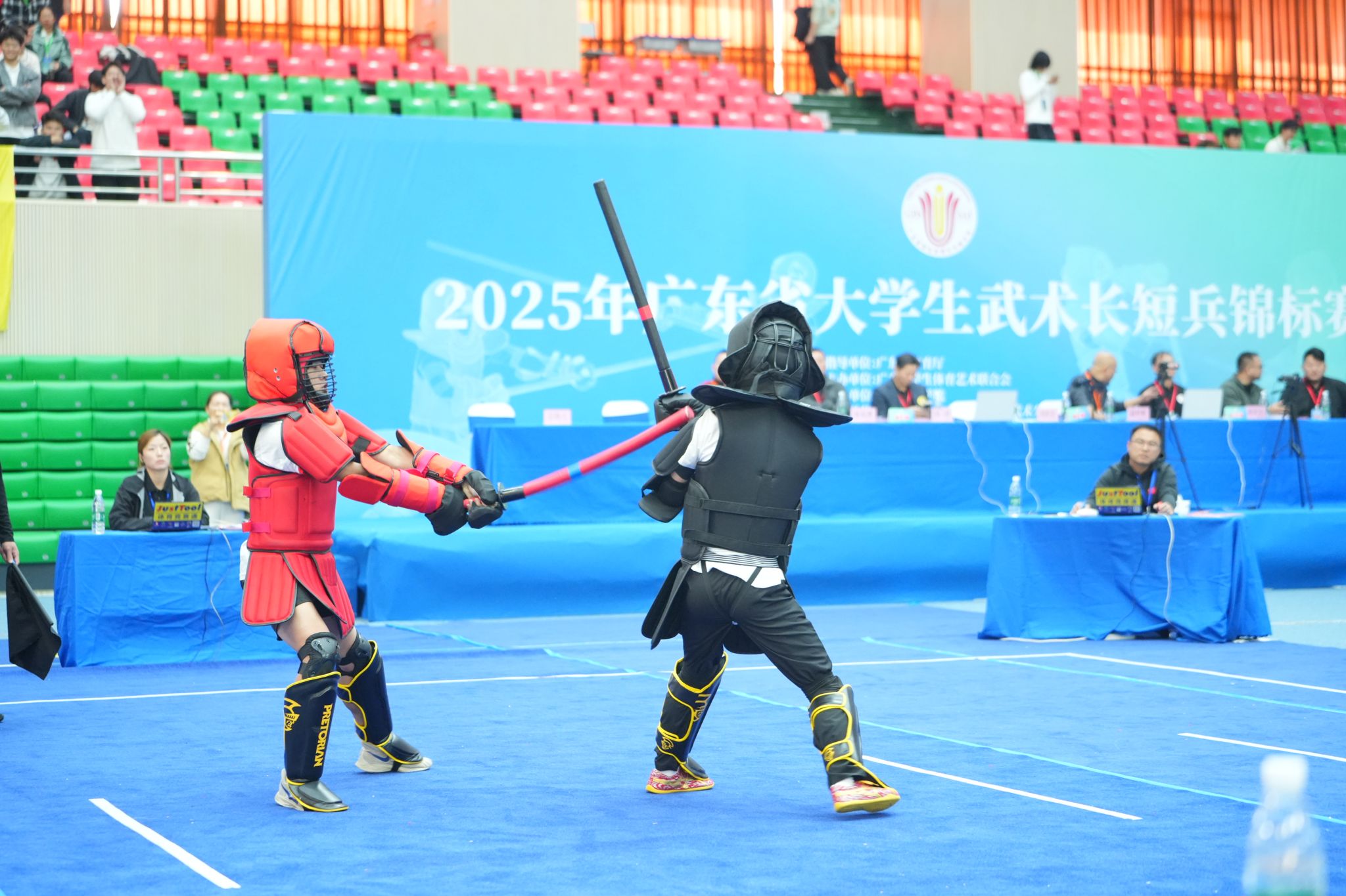 本网讯(体育学院 梁洁晶)近日,2025年广东省大学生武术长短兵锦标赛于11月21日至23日在广东科技学院举行。本届赛事在广东省教育厅指导下,由广东省学生体育艺术联合会主办,广东科技学院承办,并得到广东省学生体育艺术联合会武术分会与广东华体武术的协办支持。全省40所高校的461名运动员齐聚一堂,在甲组、乙A组、丙组三个组别及男女各8个公斤级别中展开激烈角逐,赛事规模为历届之最。