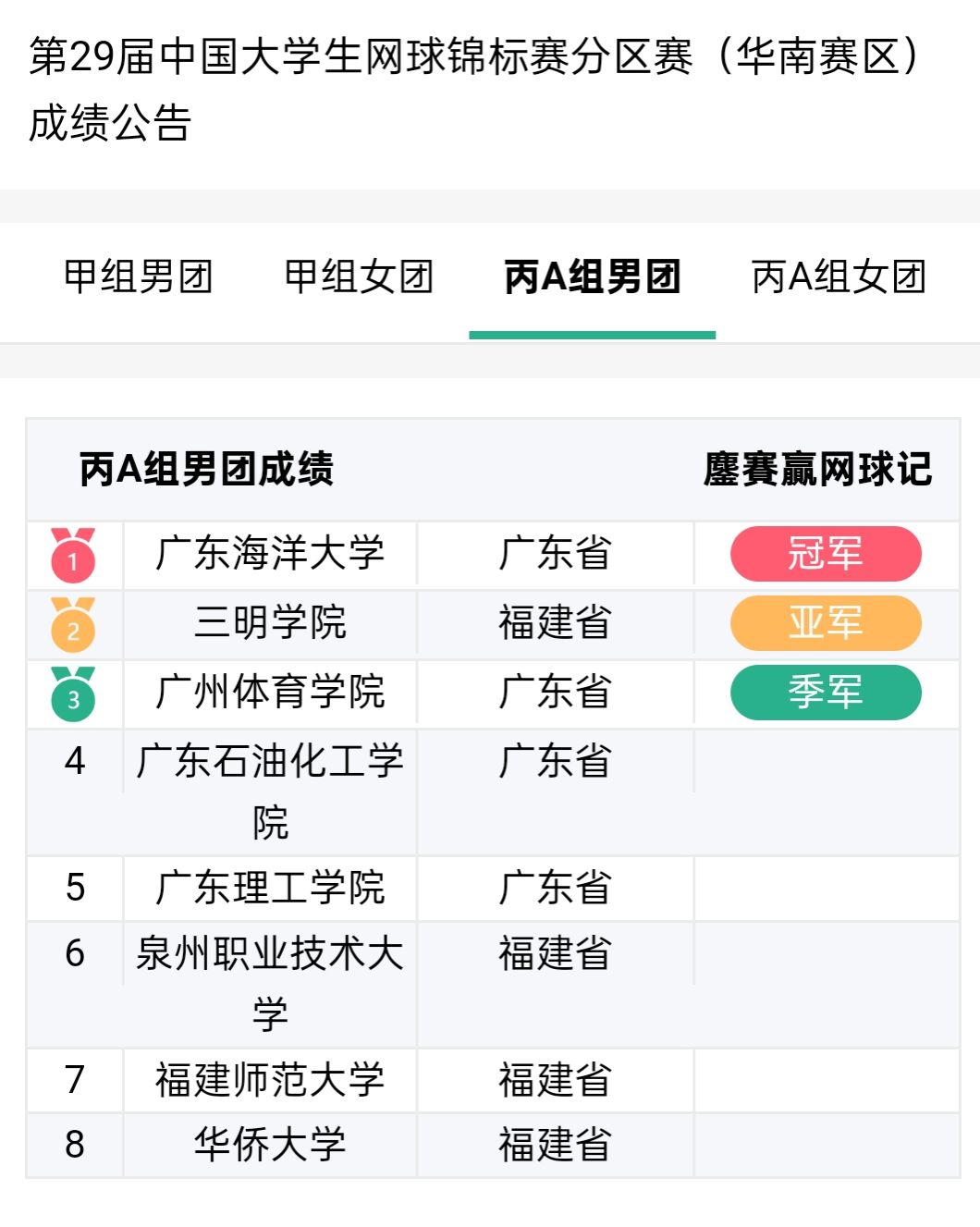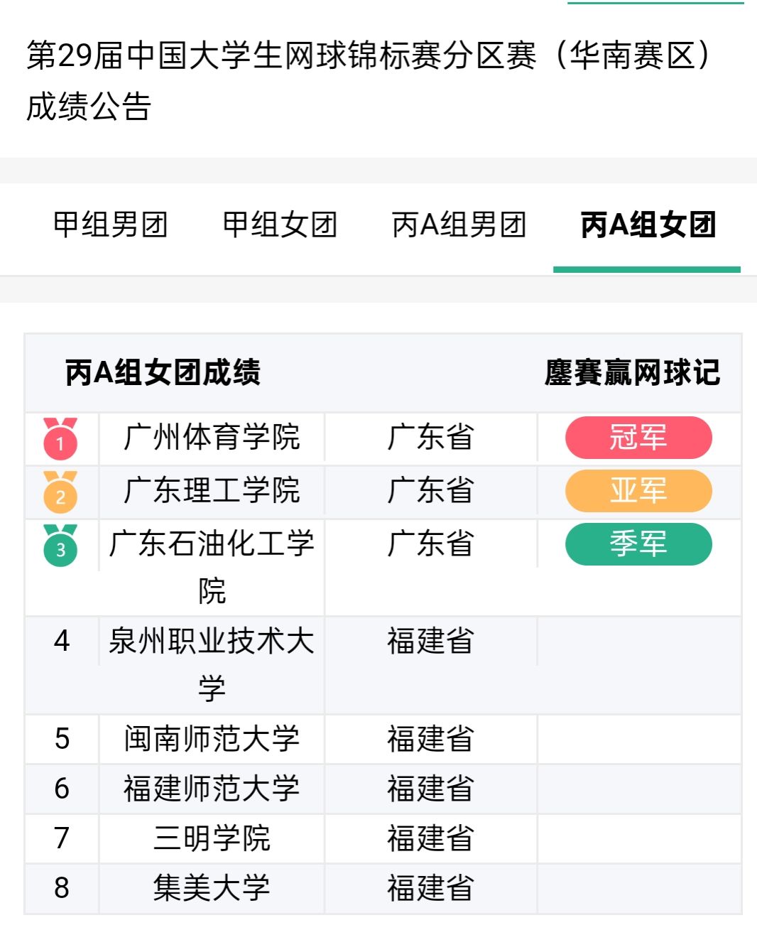 勇创历史!伟德官网网球队斩获中国大学生网球锦标赛(华南赛区)丙A组团体一等奖