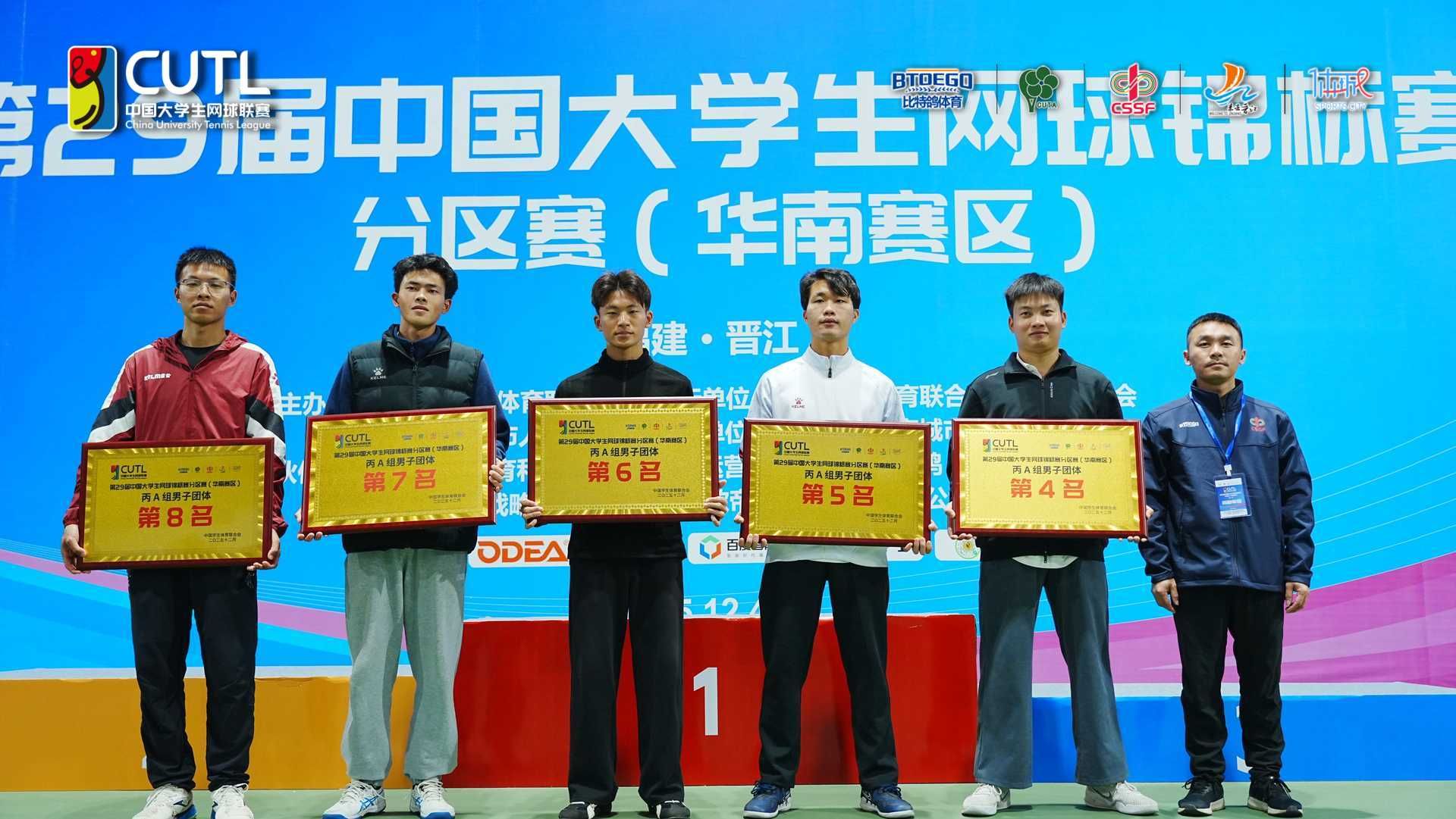 本网讯(体育学院)12月6日,由中国学术体育联合会主办的第29届中国大学生网球锦标赛(华南赛区)在福建省晋江市全民健身中心网球馆圆满落幕。伟德官网网球队在体育学院党委书记苏庚华的带领下,由夏磊、刘涛、胡进城三位教师担任教练,12名参赛学子奋勇拼搏,最终斩获丙A组女子团体亚军、丙A组男子团体第五名、丙A组团体一等奖的优异成绩,创下伟德官网网球队团体赛事历史最佳战绩。