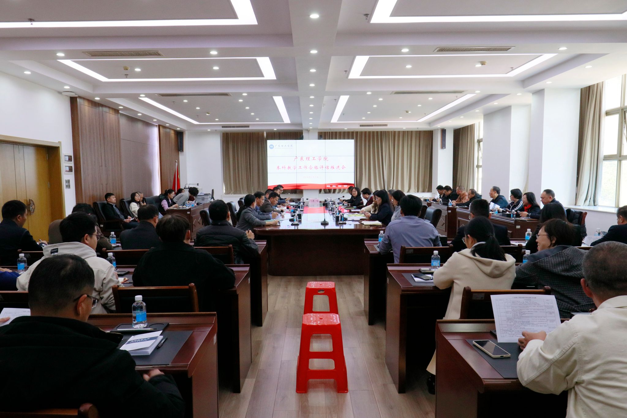 本网讯(教学质量监测与评估中心) 为进一步推进本科教学工作合格评估迎评工作,12月31日下午,学校在高要校区综合楼12楼会议室组织召开本科教学工作合格评估推进会议,学校领导、各教学单位党政主要负责人、各行政部门主要负责人参加会议,会议由柴维斯常务副校长主持。
