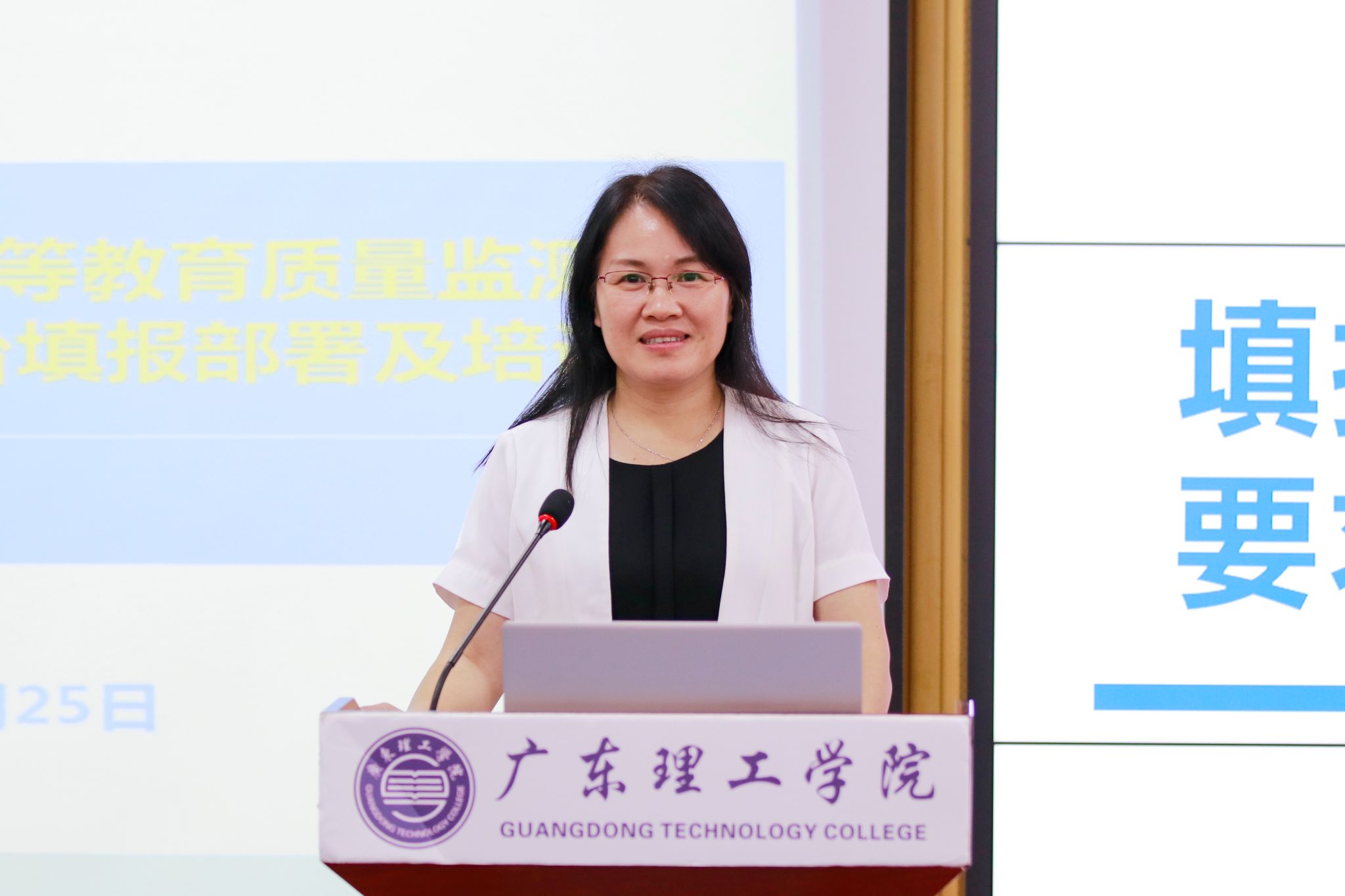 教学质量监测与评估处梁慧燕老师介绍了数据平台填报的具体工作安排,并指出数据填报工作涉及多个部门,填报人与负责人应注意各项工作的时间节点与工作流程,各填报人员应认真学习数据填报指南,注意填报指南变化部分及数据统计时间段。填报过程中,落实“责任单位负责制”,明确专人按要求采集,多次对数据进行比对与核查,避免出现数据不一致、自相矛盾、异动大等情况。