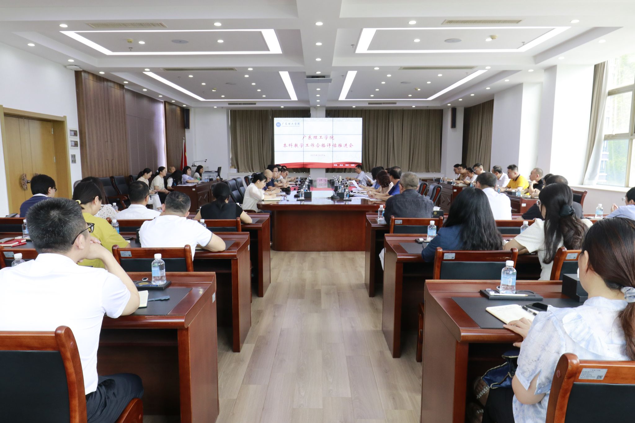 本网讯(教学质量监测与评估中心)5月20日上午,学校在高要校区综合楼12楼会议室召开本学期第4次本科教学工作合格评估迎评推进会。在校的全体校领导、党群及行政管理服务部门主要负责人、教辅单位主要负责人、教学单位党政主要负责人、二级学院副院长、教学质量监测与评估中心全体成员参加会议,会议由学校常务副校长柴维斯主持。