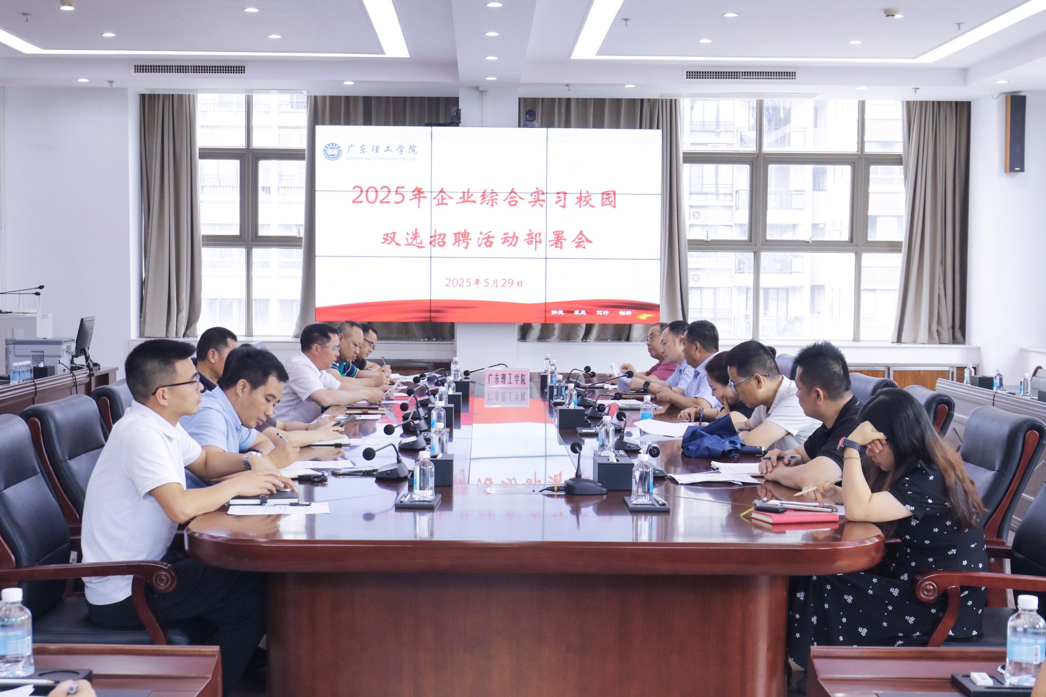 本网讯(就业指导中心)为保证2025年企业综合实习校园双选招聘活动顺利举行,5月29日,学校在综合楼12楼会议室召开2025年企业综合实习校园双选招聘活动部署会,党委副书记张宗珊、毕业生就业指导中心主任李相平、各职能部门负责人、二级学院党委书记出席会议。毕业生就业指导中心主任李相平对2025年企业综合实习校园双选招聘活动筹办情况做了说明,对各相关部门、学院工作职责进行了重点部署。张宗珊在总结讲话中指出,办好2025...