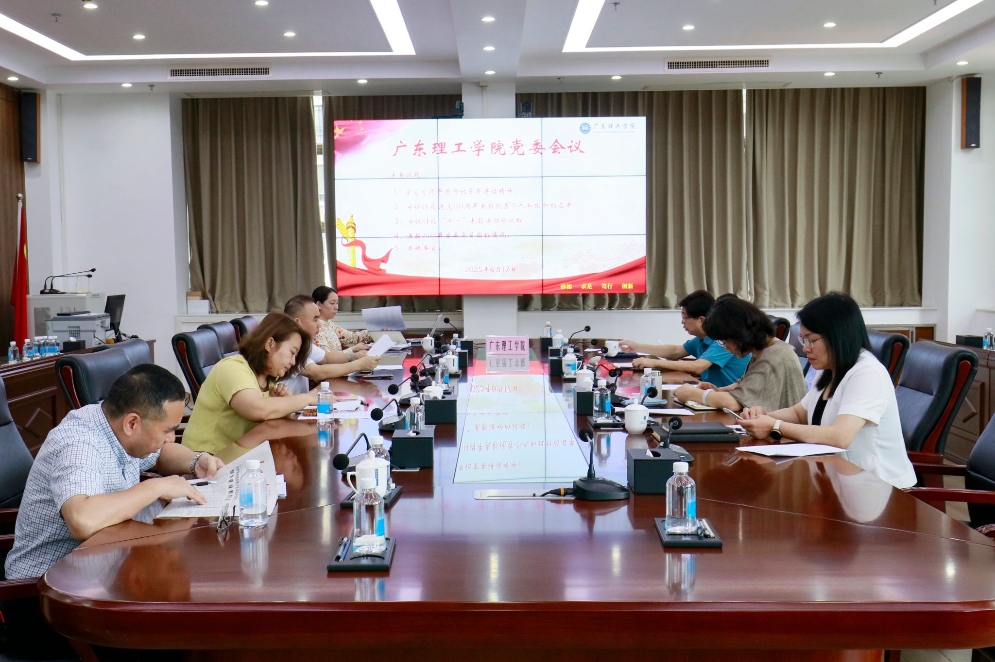 本网讯(宣传部)6月17日上午,学校党委在综合楼12楼会议室召开会议,围绕深入学习贯彻习近平总书记重要讲话精神、庆祝中国共产党成立104周年表彰工作及相关事项进行研究部署。会议由党委书记胡海建主持。深入学习讲话精神 筑牢思想根基会议第一项议题由党委委员周景报领学了习近平总书记的重要讲话精神。他强调,全校各级党组织和广大党员干部要深刻领会讲话的核心要义和实践要求,切实把思想和行动统一到党中央的决策部署上来...