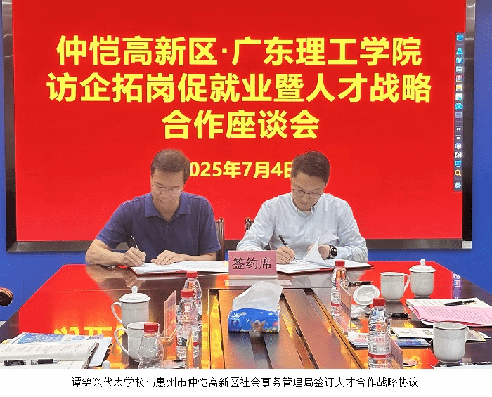 本网讯(就业指导中心)为持续深化政校企合作关系,拓宽毕业生就业渠道,7月3日-4日,副校长谭锦兴,信息技术学院副院长徐礼金,毕业生就业指导中心主任李相平、干事张恬也,企业综合实践教育中心干事常继军一行赴惠州市人社部门和企业走访,并与惠城区人社局、仲恺高新区社会事务管理局签订人才合作战略协议。7月3日上午,谭锦兴一行抵达惠城区人社局,受到副局长黄健悦及相关部门代表的热情接待。在座谈中,双方围绕人才供需...