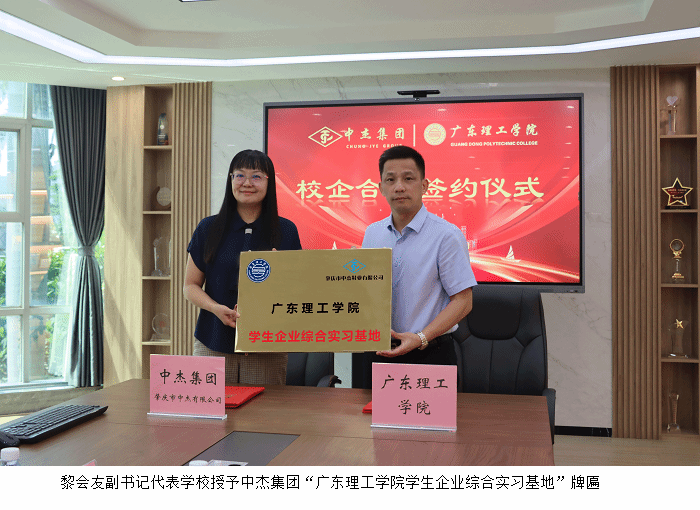 本网讯(就业指导中心)为持续深化校企合作,拓宽学生实习渠道,7月7日,学校党委副书记黎会友,外国语学院党委书记廖振宇,企业综合实践教育中心干事常继军,毕业生就业指导中心干事张恬也、黎颖怡一行先后走访中杰集团、元气森林集团,与其签订校外基地协议并授牌。上午,黎会友一行首先来到肇庆市中杰鞋业有限公司,受到总经理刘承芝等热情欢迎。在座谈中,双方围绕人才供需对接、实习实训基地建设等议题展开深入交流,黎会...