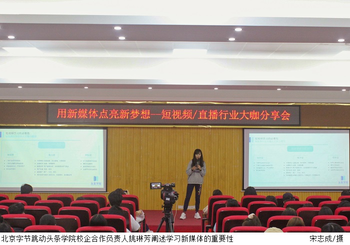 本网讯(校报记者 林晟任 实习记者 田嘉乐/黄欣怡)11月24日下午,“用新媒体点亮梦想”短视频/直播行业大咖分享会在42栋101室举行,来自字节跳动头条学院、九星互动等新媒体领域的专家担任主讲。 北京字节跳动头条学...