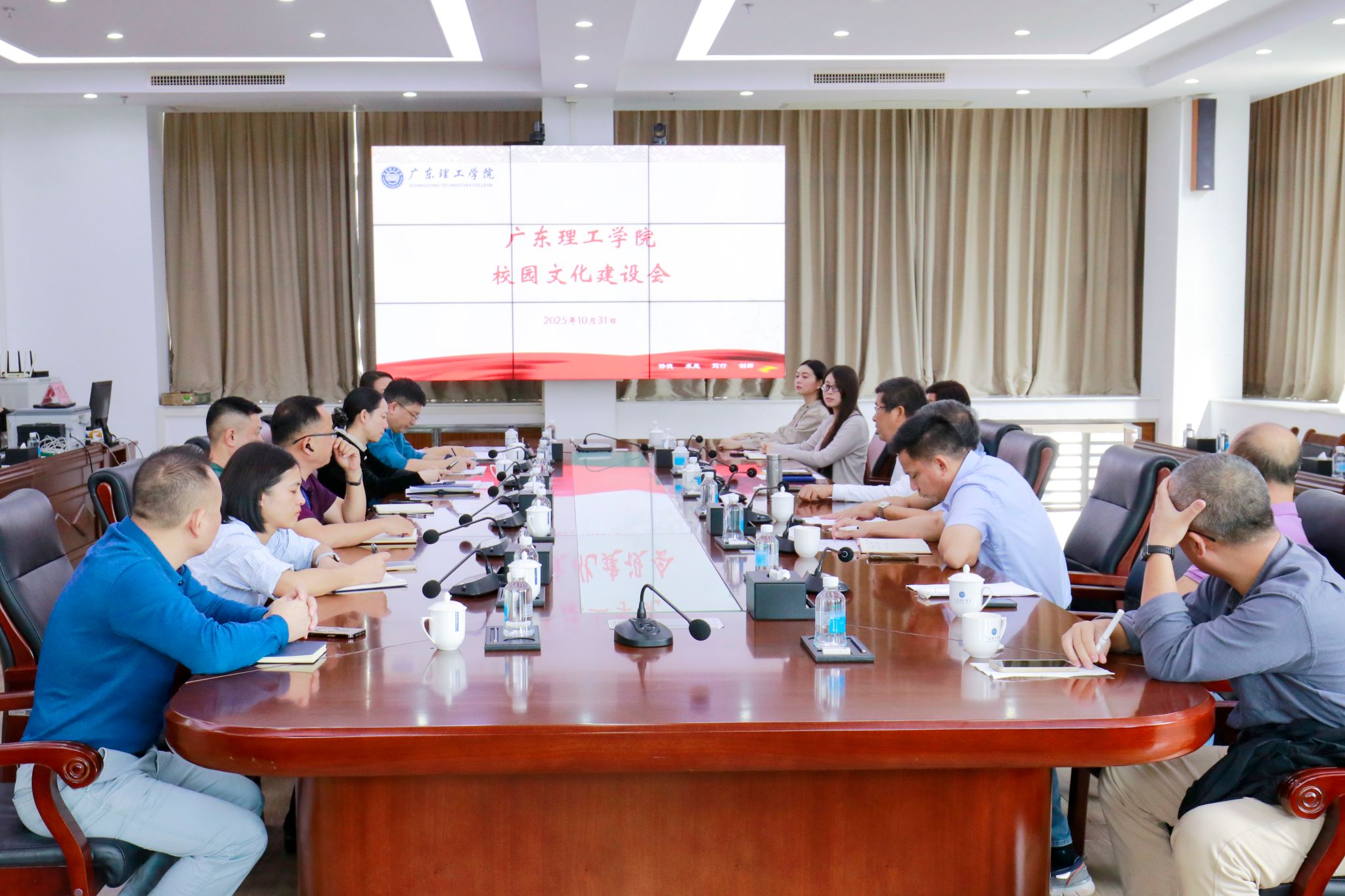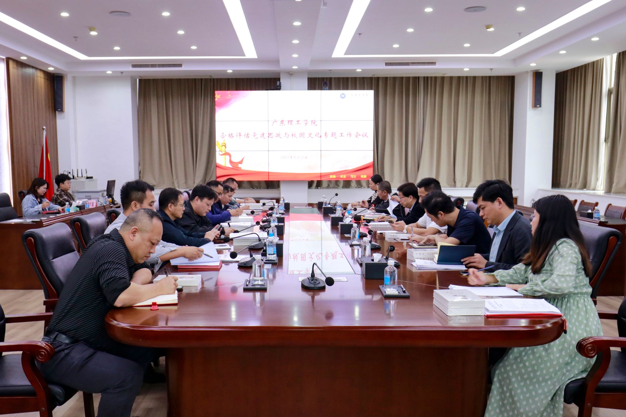 本网讯(宣传部)11月12日下午,学校党委在高要校区综合楼12楼会议室召开党建思政与校园文化建设工作专题部署会,围绕迎评促建任务,系统推进党建、思政与校园文化建设融合发展。学校党委书记胡海建,党委副书记张宗珊、黎会友,各党群部门负责人,二级学院党委书记参加会议。胡海建首先结合本科教学工作合格评估要求,对党建各项工作进行细化部署。他强调,要坚持以高质量党建引领学校高质量发展,将党建工作与迎评任务深度融...