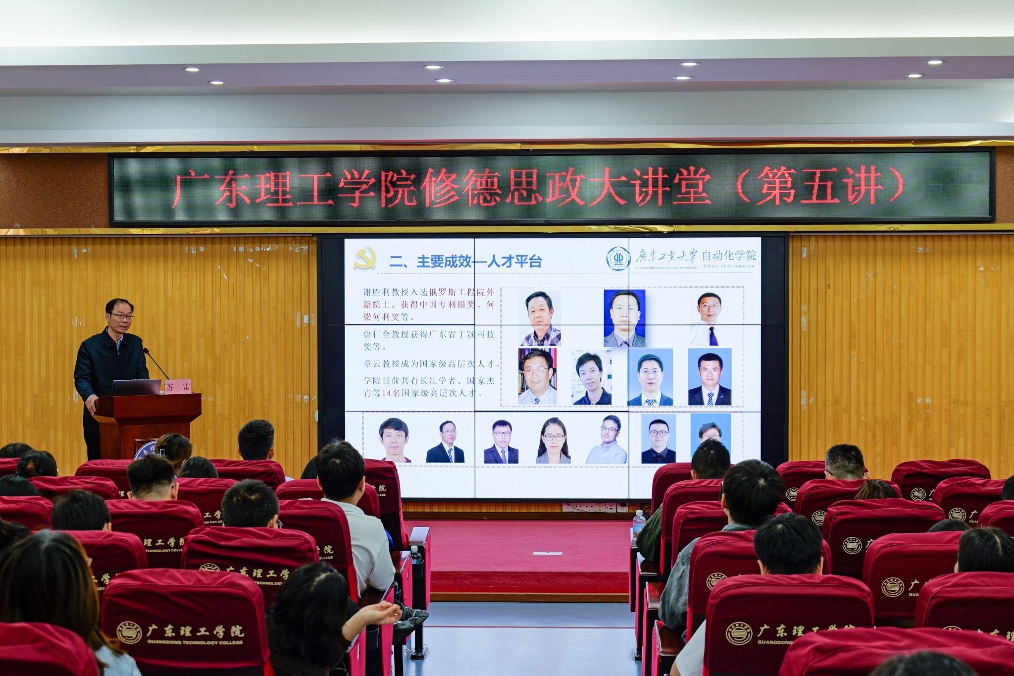 本网讯(宣传部) 为深入学习贯彻习近平新时代中国特色社会主义思想,落实新时代党的建设总要求和新时代党的组织路线,着力提升伟德官网党建工作质量与育人实效,10月31日上午,学校"修德思政大讲堂"(第五讲)如期开讲。全国党建工作标杆院系党委书记,广东工业大学党委委员、自动化学院党委书记苏雷应邀作《坚持以高质量党建引领高质量发展的高校院系基层实践与思考》专题讲座。常务副校长柴维斯,党群部门负责人,二级学院党政负...