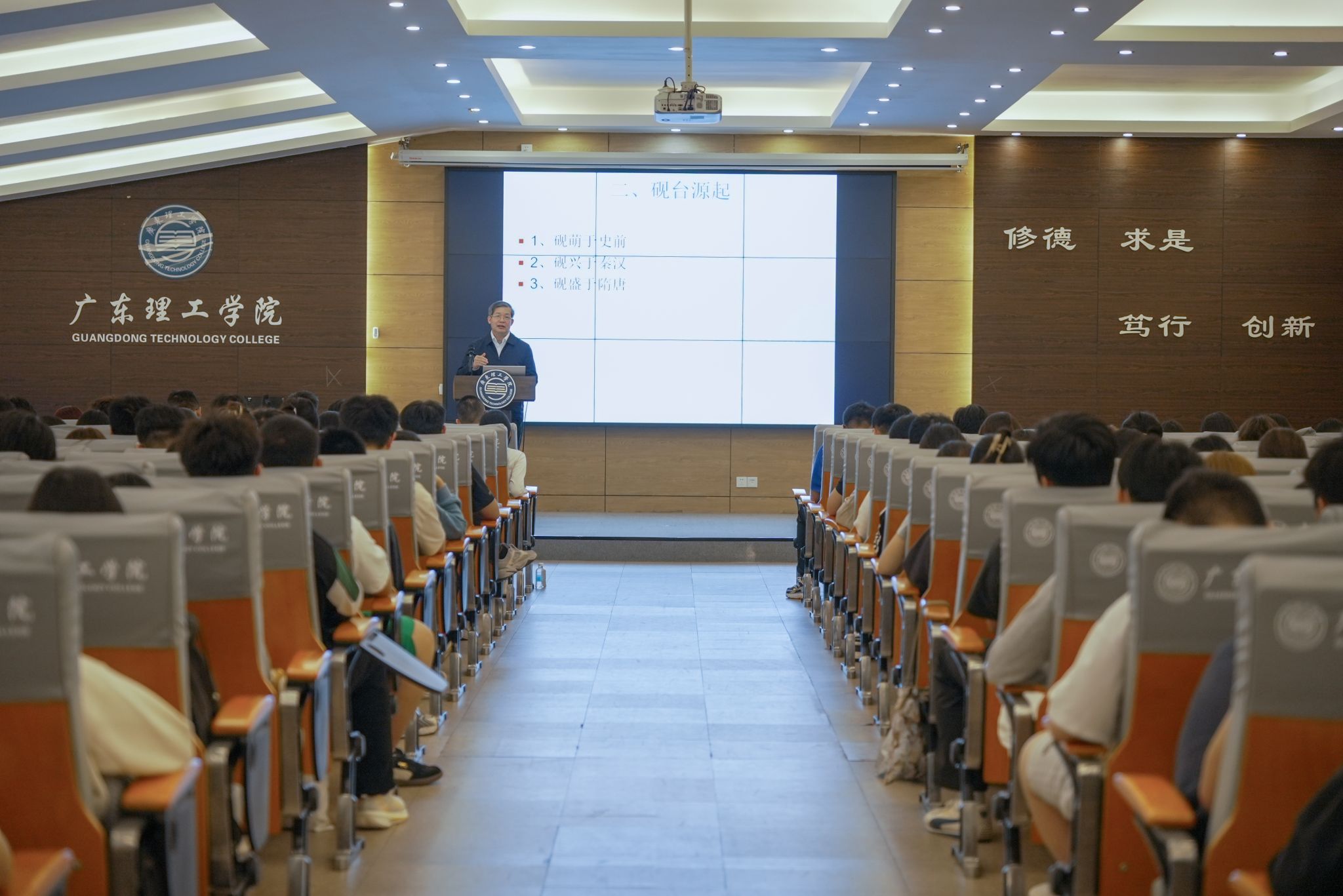 本网讯(新闻中心)11月5日下午,肇庆市端砚协会会长、肇庆学院美术学院原院长梁善教授在鼎湖校区行政楼三楼学术报告厅作了一场以端砚艺术为主题的专题讲座。讲座围绕“文化自信与端砚艺术”展开深入分享。梁善教授系统阐释了端砚所承载的文化内涵与艺术价值,为推动中华优秀传统文化的传承与发展,积极响应“文化自信”与“乡村振兴”的时代号召贡献力量。讲座由党委副书记黎会友主持。讲座中,梁善教授结合考古发现,清晰梳理...