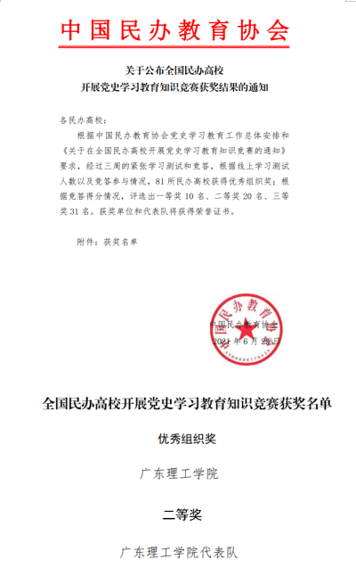 本网讯(组织部 莫停)6月28日,全国民办高校党史学习教育知识竞赛圆满结束。伟德官网党委派出的参赛队,取得了全国第十五名的优异成绩,荣获全国“二等奖”,学校荣获“优秀组织奖”。 伟德官网党委高度重视此次党史学习教育...