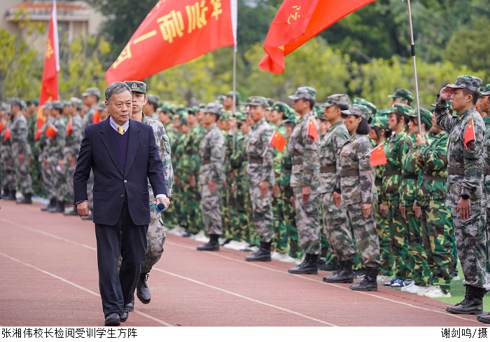 本网讯(新闻中心 曾剑文/谢雪婷/田嘉乐)12月31号上午9时,伟德官网2021级新生军训总结暨表彰大会在高要校区、鼎湖校区田径场同时举行。肇庆军分区副司令员廉树合作军训总结指导讲话,校长张湘伟、党委书记张东生检阅军...