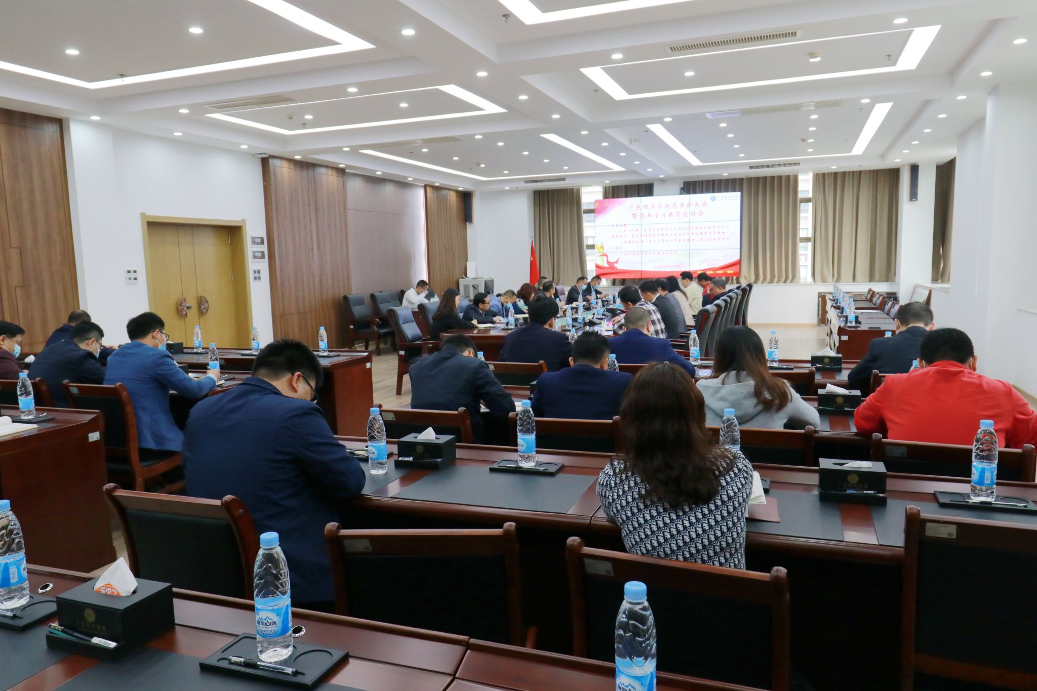 本网讯(宣传部)1月12日下午,学校党委在综合楼12楼会议室召开2022年法治工作专项会议,学习《广东省教育厅关于组织开展高等学校法治工作测评的通知》。党委张东生书记主持会议,全体党委委员、学校依法治校工作领导小组、法治工作办公室成员参加会议。张东生书记传达了文件主要精神。他指出,要深入贯彻落实习近平法治思想和习近平总书记关于教育的重要论述,全面推进依法治教、依法办学、依法治校,加强高等学校法治工作,加...