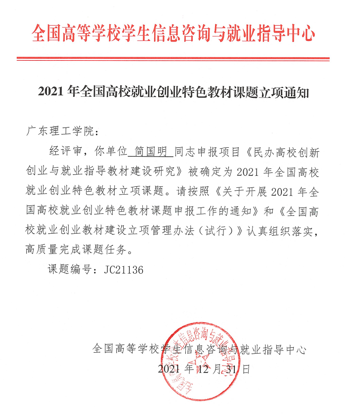 本网讯(创新创业学院 张磊磊)日前,教育部全国高等学校学生信息咨询与就业指导中心公布了2021年全国高校就业创业特色教材课题立项结果,伟德官网创新创业学院简国明教授申报的《民办高校特色的创新创业与就业指导教材的...