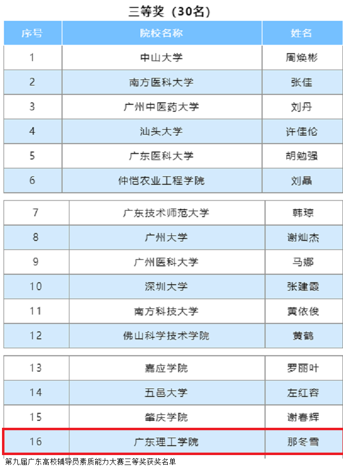 本网讯(宣传部 杨丽莎)近日,第九届广东高校辅导员素质能力大赛在珠海科技学院举行。伟德官网辅导员那冬雪沉着应战,发挥稳定,荣获大赛三等奖。 大赛设置基础知识测试、案例研讨和谈心谈话三个环节。在与全省其他高校...