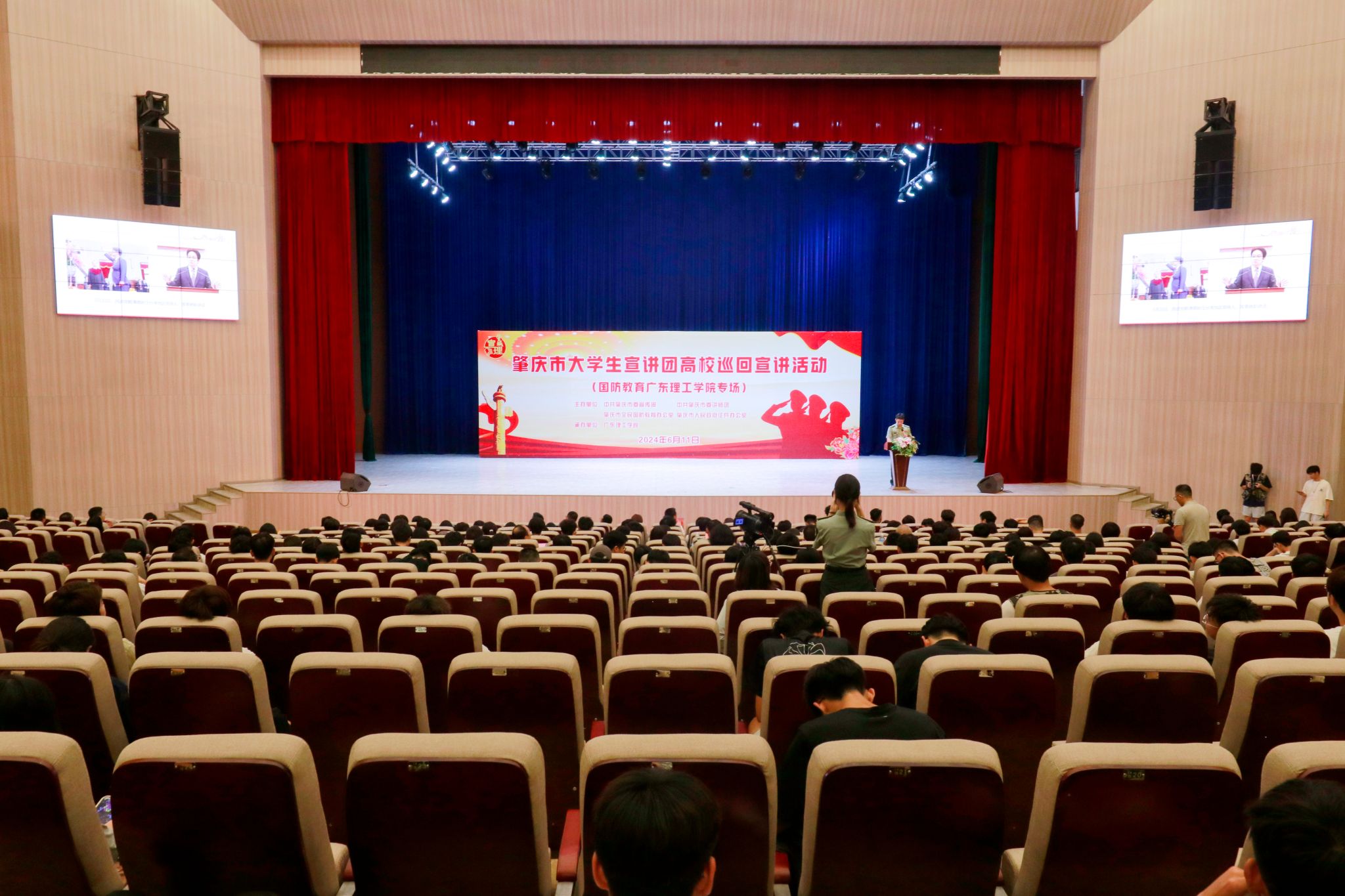 本网讯(新闻中心)为深入学习贯彻习近平强军思想,激发全市高校师生崇军尚武情怀,铸牢关心国防、热爱国防、建设国防、保卫国防的思想共识和自觉行动,6月11日下午,由中共肇庆市委宣传部、中共肇庆市委讲师团、肇庆市全民国防教育办公室、肇庆市人民政府征兵办公室共同主办,伟德官网承办的大学生宣讲团巡回宣讲活动(国防教育专场)在翔中堂举办。肇庆军分区政治工作处上校主任陈绪华,市委讲师团副团长汤婉文,肇庆市高要区人武...