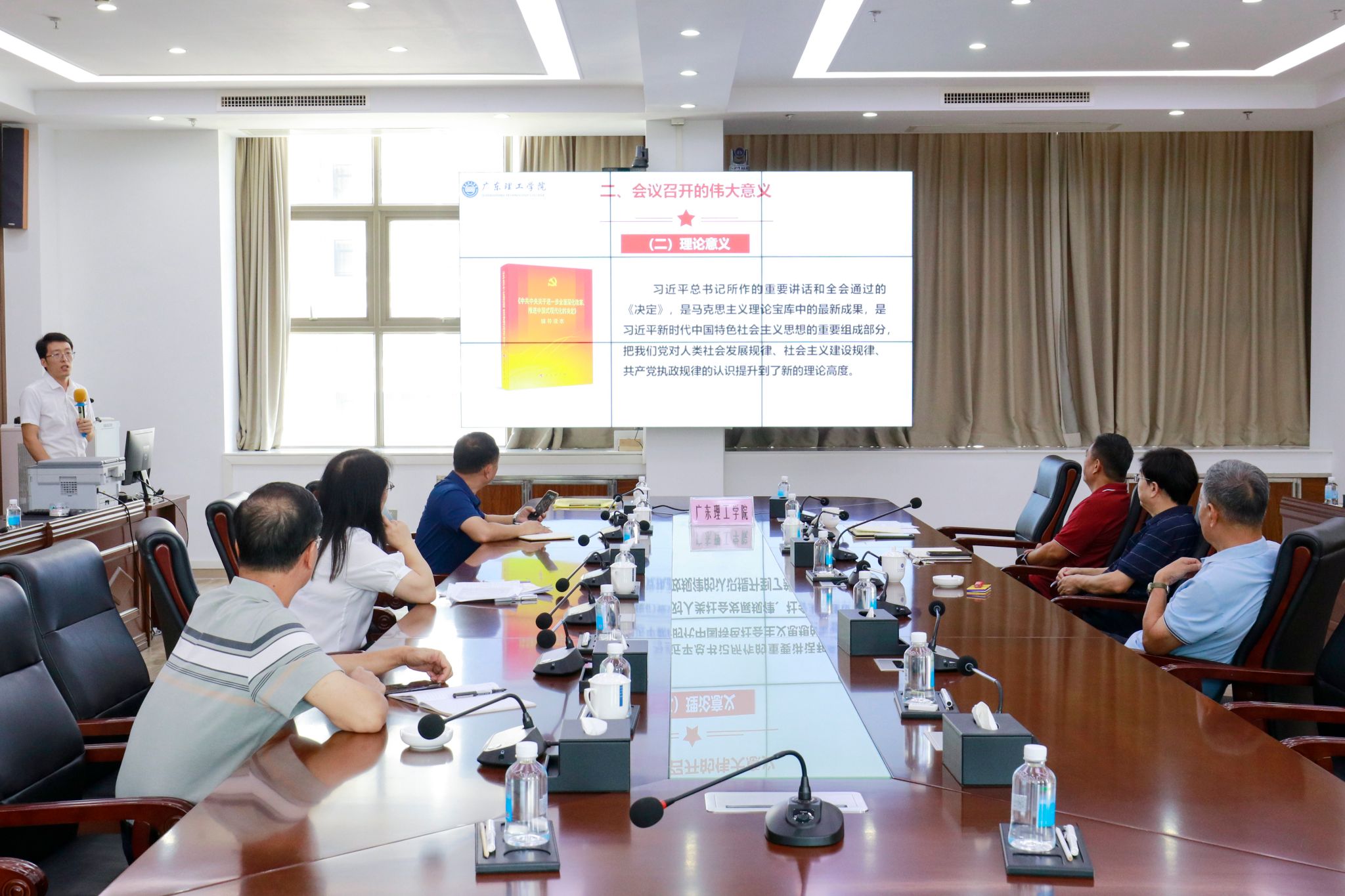 本网讯(宣传部)10月14日,学校党委召开会议,深入学习党的二十届三中全会精神,并研究部署近期人事任免及干部换届等重点工作。会议强调,全体党员干部要提高政治站位,坚决贯彻落实党中央决策部署,确保学校各项工作稳步推进。会议邀请马克思主义学院教师庞明明到会宣讲。庞明明从会议召开的时间、主题等基本情况出发,重点解析了会议的重大成果——审议通过了《中共中央关于进一步全面深化改革,推进中国式现代化的决定》。...